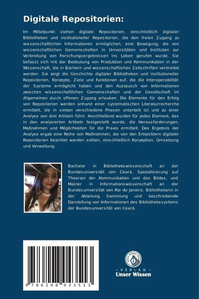 Im Mittelpunkt stehen digitale Repositorien, einschließlich digitaler Bibliotheken und institutioneller Repositorien, die den freien Zugang zu wissenschaftlichen Informationen ermöglichen, eine Bewegung, die von wissenschaftlichen Gemeinschaften in Universitäten und Instituten zur Verbreitung von Forschungsergebnissen ins Leben gerufen wurde. Sie befasst sich mit der Bedeutung von Produktion und Kommunikation in der Wissenschaft, die in Büchern und wissenschaftlichen Zeitschriften verbreitet werden. Sie zeigt die Geschichte digitaler Bibliotheken und institutioneller Repositorien, Konzepte, Ziele und Funktionen auf, die die Interoperabilität der Systeme ermöglicht haben und den Austausch von Informationen zwischen wissenschaftlichen Gemeinschaften und der Gesellschaft im Allgemeinen durch offenen Zugang erlauben. Die Elemente für den Erfolg von Repositorien werden anhand einer systematischen Literaturrecherche ermittelt, die in sieben verschiedene Phasen unterteilt ist und zu einer Analyse von drei Artikeln führt. Anschließend wurden für jedes Element, das in den analysierten Artikeln festgestellt wurde, die Herausforderungen, Maßnahmen und Möglichkeiten für die Praxis ermittelt. Das Ergebnis der Analyse ergab eine Reihe von Maßnahmen, die von den Entwicklern digitaler Repositorien beachtet werden sollten, einschließlich Konzeption, Umsetzung und Verwaltung.