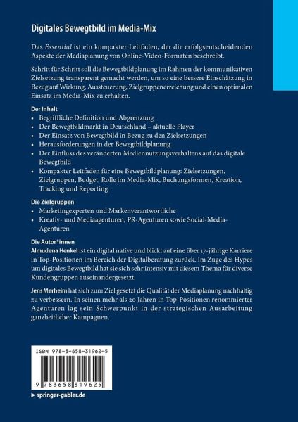 Das Essential ist ein kompakter Leitfaden, der die erfolgsentscheidenden Aspekte der Mediaplanung von Online-Video-Formaten beschreibt.