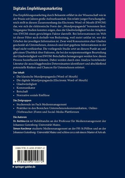 Das Empfehlungsmarketing durch Bekannte erfährt in der Wissenschaft wie in der Praxis seit Jahren große Aufmerksamkeit. Ein relativ junger Forschungsbereich stellt in diesem Zusammenhang das Electronic Word-of-Mouth (EWOM) dar, wie sich die elektronische Form des Word-of-Mouth benennen lässt. Vergangene Studien konnten zeigen, dass die Glaubwürdigkeit bei der Adaption von EWOM einen gewichtigen Faktor darstellt. Bei Informationen im Web ist dieser Filter auch deshalb von Bedeutung, weil i.d.R. unklar ist, wer der Urheber der jeweiligen Information ist. Zwar wird Konsumenten eher Glauben geschenkt als Unternehmen, dennoch sind dort gegebene Informationen i.d.R. nicht verifizierbar. Die vorliegende Studie setzt an diesem Punkt an und gibt einen Überblick über Faktoren, die bei der rezipientenseitigen Beurteilung der Glaubwürdigkeit von EWOM-Botschaften herangezogen werden bzw. diesen Prozess beeinflussen können. Ausschlaggebende Determinanten sollen dabei durch eine Analyse bestehender Literatur identifiziert werden.