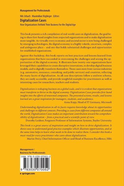 Digitalization is reshaping business on a global scale, and it is evident that organizations must transform to thrive in the digital economy. Digitalization Cases provides first-hand insights into the efforts of renowned companies. The presented actions, results, and lessons learned are a great inspiration for managers, students, and academics.