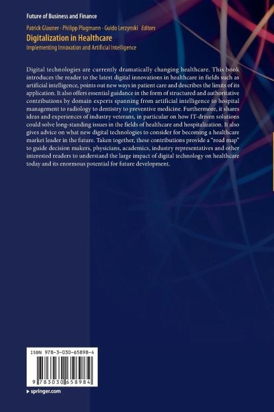 Artificial Intelligence in Healthcare: Foundations, Opportunities and Challenges.- Artificial Intelligence in Healthcare: Foundations, Opportunities and Challenges.- Opening the Door for Digital Transformation in Hospitals - IT Expert's Point of View.- Digitalization from the Patients' Perspective.- Digitalization in Rehabilitation.- Digitalization in Dentistry.- Changes in Medical Processes Due to Digitalization: Examples from Telemedicine.- COVID-19 as a Driver for Digital Transformation in Healthcare.- The Radiology of the Future.- Digitalization of Pneumological Care in the Outpatient Sector - An Inventory.- Computer Vision Applications in Medical Diagnostics.- Home 4.0 - With Sensor Data from Everyday Life to Health and Care Prognosis.- Digital Healthcare Applications: Marketing, Sales and Communication.- Ethical Implications of Digitalization in Healthcare.- Efficiently Delivering Healthcare by Repurposing Solution Principles from Industrial Condition Monitoring: A Meta-Analysis.- Microservices as Architectural Style.- Value Added Process Design for Digital Transformation in Hospitals and Medical Networks.- Digital Pharmacy.- Smart Contracts in Healthcare.- Evaluating the Ethical Aspects of Online Counseling.- Machine Learning as Key Technology of AI: Automated Workforce Planning.- Six Areas of Healthcare Where AI is Effectively Saving Lives Today.