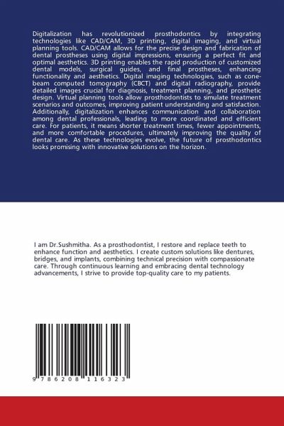 Digitalization has revolutionized prosthodontics by integrating technologies like CAD/CAM, 3D printing, digital imaging, and virtual planning tools. CAD/CAM allows for the precise design and fabrication of dental prostheses using digital impressions, ensuring a perfect fit and optimal aesthetics. 3D printing enables the rapid production of customized dental models, surgical guides, and final prostheses, enhancing functionality and aesthetics. Digital imaging technologies, such as cone-beam computed tomography (CBCT) and digital radiography, provide detailed images crucial for diagnosis, treatment planning, and prosthetic design. Virtual planning tools allow prosthodontists to simulate treatment scenarios and outcomes, improving patient understanding and satisfaction. Additionally, digitalization enhances communication and collaboration among dental professionals, leading to more coordinated and efficient care. For patients, it means shorter treatment times, fewer appointments, and more comfortable procedures, ultimately improving the quality of dental care. As these technologies evolve, the future of prosthodontics looks promising with innovative solutions on the horizon.