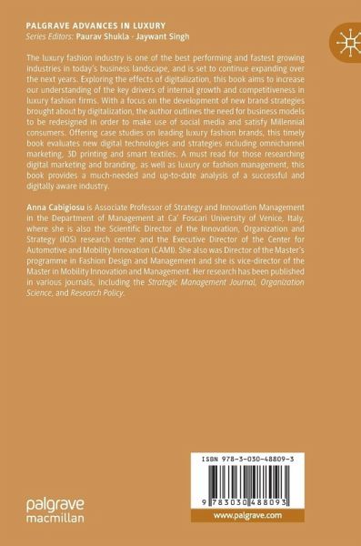 The luxury fashion industry is one of the best performing and fastest growing industries in today's business landscape, and is set to continue expanding over the next years. Exploring the effects of digitalization, this book aims to increase our understanding of the key drivers of internal growth and competitiveness in luxury fashion firms. With a focus on the development of new brand strategies brought about by digitalization, the author outlines the need for business models to be redesigned in order to make use of social media and satisfy Millennial consumers. Offering case studies on leading luxury fashion brands, this timely book evaluates new digital technologies and strategies including omnichannel marketing, 3D printing and smart textiles. A must-read for those researching digital marketing and branding, as well as luxury or fashion management, this book provides a much-needed and up-to-date analysis of a successful and digitally aware industry.