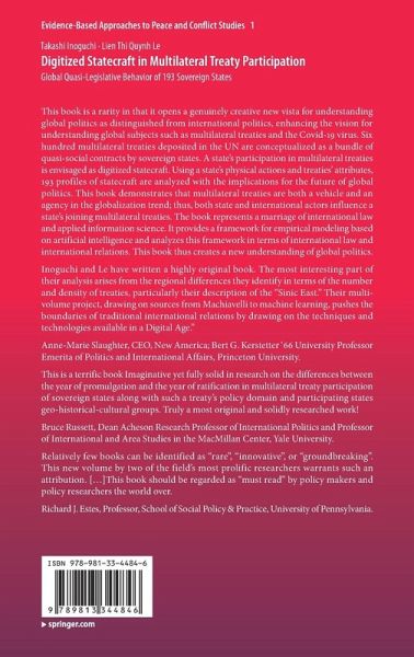 This book is a rarity in that it opens a genuinely creative new vista for understanding global politics as distinguished from international politics, enhancing the vision for understanding global subjects such as multilateral treaties and the Covid-19 virus. Six hundred multilateral treaties deposited in the UN are conceptualized as a bundle of quasi-social contracts by sovereign states. A state's participation in multilateral treaties is envisaged as digitized statecraft. Using a state's physical actions and treaties' attributes, 193 profiles of statecraft are analyzed with the implications for the future of global politics. This book demonstrates that multilateral treaties are both a vehicle and an agency in the globalization trend; thus, both state and international actors influence a state's joining multilateral treaties. The book represents a marriage of international law and applied information science. It provides a framework for empirical modeling based on artificial intelligence and analyzes this framework in terms of international law and international relations. This book thus creates a new understanding of global politics.