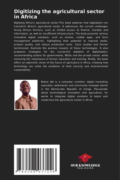 Digitizing Africa's agricultural sector.This book explores how digitization can transform Africa's agricultural sector. It addresses the current challenges facing African farmers, such as limited access to finance, markets and information, as well as insufficient infrastructure. The book presents various innovative digital solutions, such as drones, mobile apps, and farm management platforms, highlighting their potential to improve yields, product quality, and reduce production costs. Case studies and farmer testimonials illustrate the positive impacts of these technologies. It also proposes strategies for the successful adoption of digitalization, recommending actions for governments, NGOs and the private sector, while stressing the importance of farmer education and training. Finally, the book offers an optimistic vision of the future of agriculture in Africa, showing how technology can solve the problems of food security and environmental sustainability.