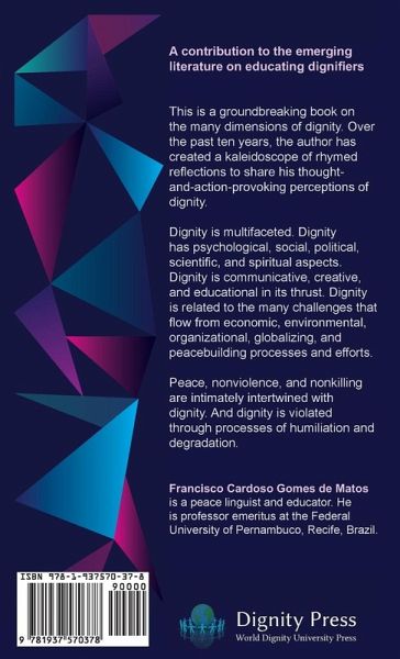 A contribution to the emerging literature on educating dignifiers. This is a groundbreaking book on the many dimensions of dignity. Over the past ten years, the author has created a kaleidoscope of rhymed reflections to share his thought-and-action-provoking perceptions of dignity. Dignity is multifaceted. Dignity has psychological, social, political, scientific, and spiritual aspects. Dignity is communicative, creative, and educational in its thrust. Dignity is related to the many challenges that flow from economic, environmental, organizational, globalizing, and peace-building processes and efforts. Peace, nonviolence, and nonkilling are intimately intertwined with dignity. And dignity is violated through processes of humiliation and degradation. Francisco Cardoso Gomes de Matos is a peace linguist and educator. He is professor emeritus at the Federal University of Pernambuco, Recife, Brazil.