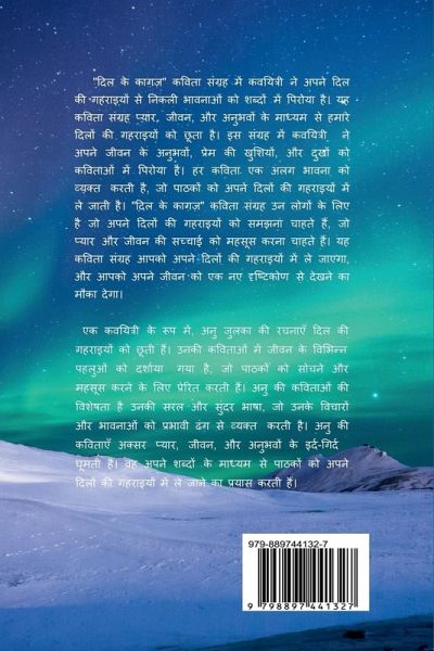 "Dil Ke Kagaz" (Pages of the Heart) is a soul-stirring collection of poems that delves into the depths of human emotions. This heartfelt anthology explores themes of love, life, and longing, weaving a tapestry of words that resonate deeply with the reader. Through her evocative verse, poetess Anu Julka invites you to embark on a journey of self-discovery, navigating the complexities of the human heart. Each poem is a poignant reflection of the human experience, capturing the essence of joy, sorrow, and everything in between. "Dil Ke Kagaz" is a must-read for anyone who has ever loved, lost, or longed for connection. Let these tender words touch your heart and soul.