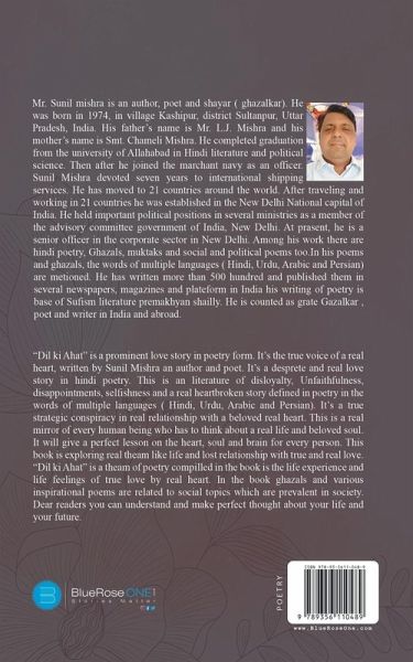 "Dil ki Ahat" is a prominent love story in poetry form. It's the true voice of a real heart, written by Sunil Mishra an author and poet. It's a desprete and real love story in hindi poetry. This is an literature of disloyalty, Unfaithfulness, disappointments, selfishness and a real heartbroken story defined in poetry in the words of multiple languages ( Hindi, Urdu, Arabic and Persian). It's a true strategic conspiracy in real relationship with a beloved real heart. This is a real mirror of every human being who has to think about a real life and beloved soul. It will give a perfect lesson on the heart, soul and brain for every person. This book is exploring real theam like life and lost relationship with true and real love. "Dil ki Ahat" is a theam of poetry compilled in the book is the life experience and life feelings of true love by real heart. In the book ghazals and various inspirational poems are related to social topics which are prevalent in society. Dear readers you can understand and make perfect thought about your life and your future.