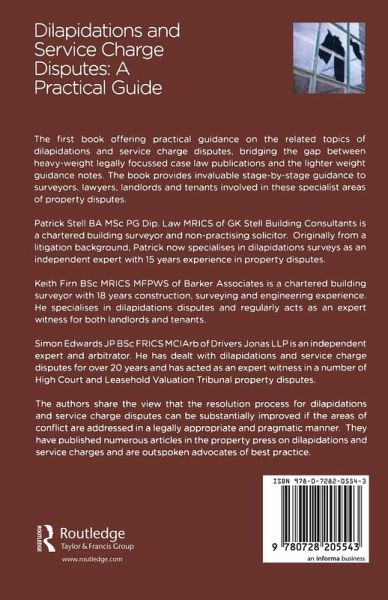 1: What are Dilapidations and Service Charge Disputes? 2: Dilapidations, Statute and Common Law 3: Dilapidations and Litigation 4: The Role of Professional Advisors 5: What is the Leasehold Interest? 6: Dilapidations Remedies 7: Surveyor Due Diligence 8: The Dilapidations Survey 9: Preparation of the Schedule 10: Collating the Claim 11: Serving the Schedule 12: The Tenant's Counter Schedule 13: Negotiation and Settlement 14: Common Disputes - Legal Issues 15: Common Disputes - Technical Issues 16: An Introduction to Service Charges 17: Commercial Service Charges 18: Procuring and Apportioning Service Charges 19: Service Charge Disputes 20: Avoiding Dilapidations and Service Charge Disputes