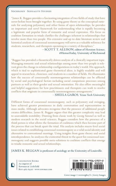Different forms of consensual nonmonogamy, such as polyamory and swinging, have achieved greater prominence in daily conversation and representation in mass media. Although advocates recognize that the presence of additional people creates difficulties, the author argues that this greater complexity may lead to unavoidable instability. Drawing from classic work by Georg Simmel as well as modern research in the social sciences, James K. Beggan considers how the presence of a third person is what allows the formation of coalitions which then become part of the process that can break apart the triad. This paradox-explained with reference to game theory and social interdependence-represents the existential threat to the quest for consensual nonmonogamy. Beggan describes how psychological processes involving social comparison and gender and sexual orientation can limit the formation of certain types of coalitions which, in turn, influence which relationships can be expected to emerge in the context of consensual nonmonogamy. His analysis includes macro-level social issues related to establishing consensual nonmonogamy as a valid social identity and alternative to conventional marriage. Using insights from game theory, he suggests possible meta-solutions to coalition conflicts that emerge in triadic romantic and sexual relationships.