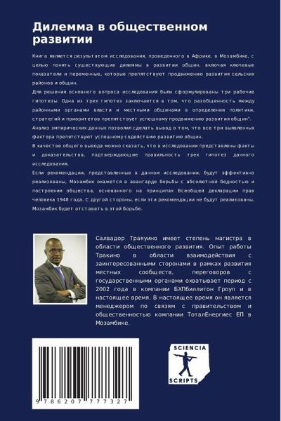Kniga qwlqetsq rezul'tatom issledowaniq, prowedennogo w Afrike, w Mozambike, s cel'ü ponqt' suschestwuüschie dilemmy w razwitii obschin, wklüchaq klüchewye pokazateli i peremennye, kotorye prepqtstwuüt prodwizheniü razwitiq sel'skih rajonow i obschin. Dlq resheniq osnownogo woprosa issledowaniq byli sformulirowany tri rabochie gipotezy. Odna iz treh gipotez zaklüchaetsq w tom, chto razobschennost' mezhdu rajonnymi organami wlasti i mestnymi obschinami w opredelenii politiki, strategij i prioritetow prepqtstwuet uspeshnomu prodwizheniü razwitiq obschin".Analiz ämpiricheskih dannyh pozwolil sdelat' wywod o tom, chto wse tri wyqwlennyh faktora prepqtstwuüt uspeshnomu sodejstwiü razwitiü obschin.V kachestwe obschego wywoda mozhno skazat', chto w issledowanii predstawleny fakty i dokazatel'stwa, podtwerzhdaüschie prawil'nost' treh gipotez dannogo issledowaniq.Esli rekomendacii, predstawlennye w dannom issledowanii, budut äffektiwno realizowany, Mozambik okazhetsq w awangarde bor'by s absolütnoj bednost'ü i postroeniq obschestwa, osnowannogo na principah Vseobschej deklaracii praw cheloweka 1948 goda. S drugoj storony, esli äti rekomendacii ne budut realizowany, Mozambik budet otstawat' w ätoj bor'be.