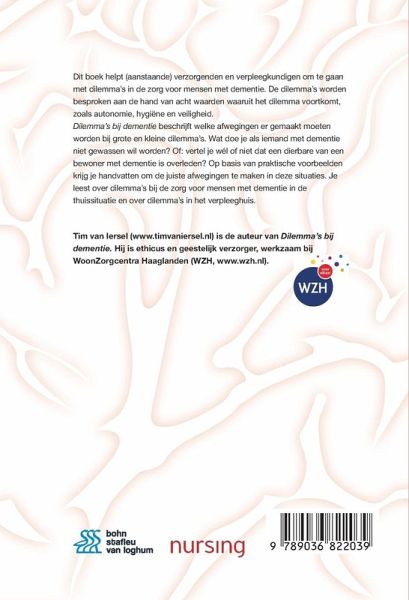 Dit boek brengt de dilemma's in beeld waarvoor je komt te staan als je zorgt voor iemand met dementie. Deze dilemma's worden besproken aan de hand van acht waarden waaruit het dilemma voortkomt, zoals autonomie en veiligheid. Het boek richt zich op verzorgenden en verpleegkundigen (in opleiding).