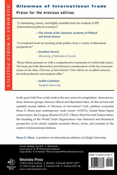 In the post-Cold War world, trade is the new arena for competition-between nations, between groups, between ethical and theoretical ideas. In this revised and updated second edition of Dilemmas of International Trade political economist Bruce Moon puts contemporary trade events--NAFTA, United States-Japan controversies, the Uruguay Round of GATT, China's Most Favored Nation status, the founding of the World Trade Organization--into historical and theoretical perspective with the British Corn Laws, the Great Depression, the Bretton Woods system, and the origins of the European Union. Economic theory, terms, and concepts are clearly explained and contextualized with those from international relations.Throughout the book, three central dilemmas are examined: the unequal distribution of income and wealth created by international trade, the tradeoff among competing values that trade requires, and the difficult interrelationship between economic and foreign policy goals within and among trading nations. Though internationally framed, each dilemma has ramifications at a variety of levels all the way down to the individual's role in the global economy-as a consumer, as a citizen, and ultimately as a moral agent.