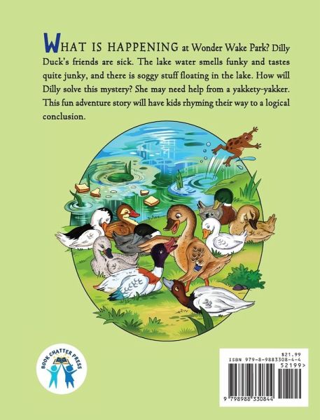 Join Dilly Duck and her friends in a heartwarming adventure to save their beloved lake! In Dilly Duck Saves the Day: Working Together and Caring for Nature, Dilly discovers that her feathered friends have fallen ill from eating bread left by well-meaning visitors. With quick thinking and a big heart, Dilly sets out to clean up the lake and educate everyone about the importance of proper environmental care. Alongside a cast of lovable characters, including the wise and quirky park ranger Roy, known for his yackety-yakking, Dilly learns that even the smallest act of kindness can make a big difference. This delightful picture book teaches young readers about environmental awareness, the power of asking for help when facing tough challenges, the value of friendship, and the importance of teamwork. With its vibrant illustrations and soothing, rhyming narrative, this enchanting tale is a hit with children, parents, caregivers, and teachers. Dilly Duck Saves the Day is more than just a story-it's a compelling lesson in caring for our world and each other. "This story is perfect for kids to read at home or in school and provides a strong message about caring for the world and one another. At the end of the book, kids and parents will find questions - and a helpful sheet on how to keep birdlife safe and the waterways clean. Lovely book, and highly recommended for kids everywhere." Anne-Marie Reynolds, Readers' Favorite Reviewer Enjoy the third book in the Dilly Duck and Friends series, and prepare for another fun-filled journey with Dilly and her friends that will leave you feeling engaged and motivated to learn more about caring for nature! Complete your Dilly Duck and Friends collection! Read all 3 Dilly Duck and Friends books! Dilly Duck Plays all Day, Dilly Duck Plans a Parade, Dilly Duck Saves the Day