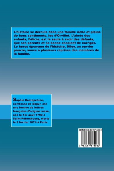 L'histoire se déroule dans une famille riche et pleine de bons sentiments, les d'Orvillet. L'aînée des enfants, Félicie, est la seule à avoir des défauts, que ses parents et sa bonne essaient de corriger. Le héros éponyme de l'histoire, Diloy, un ouvrier pauvre, sauve à plusieurs reprises des membres de la famille.