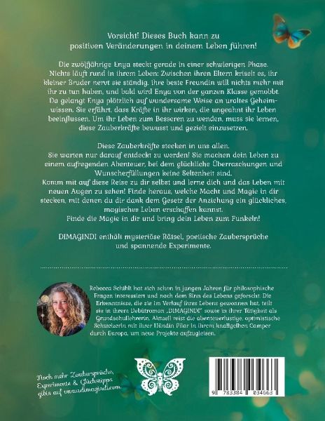 Vorsicht! Dieses Buch kann zu positiven Veränderungen in deinem Leben führen! Die zwölfjährige Enya steckt gerade in einer schwierigen Phase. Nichts läuft rund in ihrem Leben: Zwischen ihren Eltern kriselt es, ihr kleiner Bruder nervt sie ständig, ihre beste Freundin will nichts mehr mit ihr zu tun haben, und bald wird Enya von der ganzen Klasse gemobbt. Da gelangt Enya plötzlich auf wundersame Weise an uraltes Geheimwissen. Sie erfährt, dass Kräfte in ihr wirken, die ungeahnt ihr Leben beeinflussen. Um ihr Leben zum Besseren zu wenden, muss sie lernen, diese Zauberkräfte bewusst und gezielt einzusetzen.Diese Zauberkräfte stecken in uns allen. Sie warten nur darauf entdeckt zu werden! Sie machen dein Leben zu einem aufregenden Abenteuer, bei dem glückliche Überraschungen und Wunscherfüllungen keine Seltenheit sind.Komm mit auf diese Reise zu dir selbst und lerne dich und das Leben mit neuen Augen zu sehen! Finde heraus, welche Macht und Magie in dir stecken, mit denen du dir dank dem Gesetz der Anziehung ein glückliches, magisches Leben erschaffen kannst. Finde die Magie in dir und bring dein Leben zum Funkeln!DIMAGINDI enthält mysteriöse Rätsel, poetische Zaubersprüche und spannende Experimente.