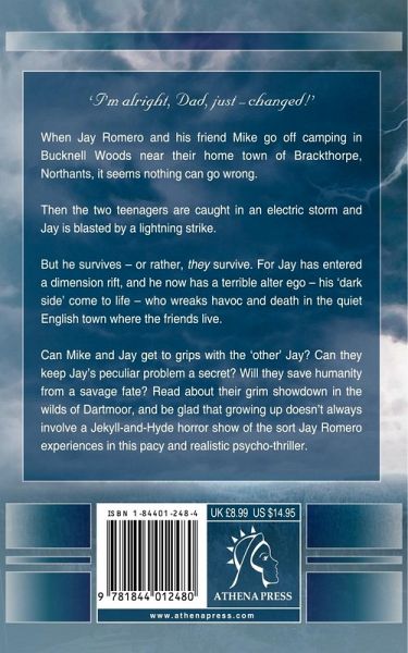 'I'm alright, Dad, just - changed!' When Jay Romero and his friend Mike go off camping in Bucknell Woods near their home town of Brackthorpe, Northants, it seems nothing can go wrong. Then the two teenagers are caught in an electric storm and Jay is blasted by a lightning strike. But he survives - or rather, they survive. For Jay has entered a dimension rift, and he now has a terrible alter ego - his 'dark side' come to life - who wreaks havoc and death on the quiet English town where the friends live. Can Mike and Jay get to grips with the 'other' Jay? Can they keep Jay's peculiar problem a secret? Will they save humanity from a savage fate? Read about their grim showdown in the wilds of Dartmoor, and be glad that growing up doesn't always involve a Jekyll-and-Hyde horror show of the sort Jay Romero experiences in this pacy and realistic psycho-thriller.