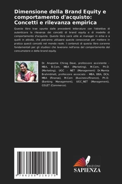 Questo libro trae spunto dalle precedenti letterature con l'obiettivo di autenticare la rilevanza dei concetti di brand equity e di modello di comportamento d'acquisto. Questo libro sarà utile ai manager in erba e a quelli in attività, che potranno utilizzare queste conoscenze per mettere in pratica questi concetti nel mondo reale. I contenuti di questo libro saranno fondamentali per gli studiosi che lavorano nell'area del comportamento del consumatore e della brand equity.