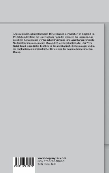 Die Untersuchung geht der Frage nach der Vereinbarkeit unterschiedlicher ekklesiologischer Konzeptionen innerhalb der Kirche von England im 19. Jahrhundert sowie den daraus erwachsenden Chancen und Grenzen für den heutigen ökumenischen Dialog nach. Die jeweiligen Positionen werden zunächst rekonstruiert, auf ihre Unterschiede und Gemeinsamkeiten hin analysiert und im Anschluss daran daraufhin befragt, inwiefern es eine inhaltliche Grundlage für ihre Einigung als Teile der einen Kirche von England gibt. Abschließend wird anhand ökumenischer Basisdokumente der Gegenwart der inhaltliche Niederschlag der einzelnen Konzeptionen im Blick auf die Verwendung unterschiedlicher ekklesiologischer Paradigmen im Dialog untersucht. So lässt sich zeigen, wie hierbei Elemente aller Positionen funktionalisiert werden, ohne dass es zu einer echten Vermittlung zwischen den verschiedenen Grundausrichtungen kommt. Die intensive Auseinandersetzung mit dem anglikanischen Kirchenverständnis des 19. Jahrhunderts dient damit über die Diskussion der Implikationen für die mögliche innere Einheit der Kirche hinaus als Grundlage für einen Einblick in die Konsequenzen der damaligen Differenzen für den ökumenischen Dialog der Gegenwart.