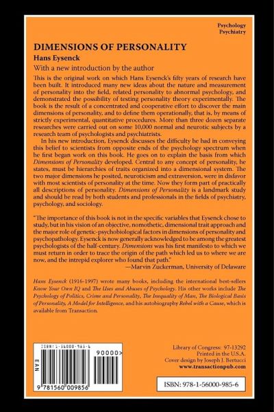 This is the original work on which Hans Eysenck's fifty years of research have been built. It introduced many new ideas about the nature and measurement of personality into the field, related personality to abnormal psychology, and demonstrated the possibility of testing personality theory experimentally. The book is the result of a concentrated and cooperative effort to discover the main dimensions of personality, and to define them operationally, that is, by means of strictly experimental, quantitative procedures. More than three dozen separate researches were carried out on some 10,000 normal and neurotic subjects by a research team of psychologists and psychiatrists. A special feature of this work is the close collaboration between psychologists and psychiatrists. Eysenck believes that the exploration of personality would have reached an advanced state much earlier had such a collaboration been the rule rather than the exception in studies of this kind. Both disciplines benefit by working together on the many problems they have in common. In his new introduction, Eysenck discusses the difficulty he had in conveying this belief to scientists from opposite ends of the psychology spectrum when he first began work on this book. He goes on to explain the basis from which Dimensions of Personality developed. Central to any concept of personality, he states, must be hierarchies of traits organized into a dimensional system. The two major dimensions he posited, neuroticism and extraversion, were in disfavor with most scientists of personality at the time. Now they form part of practically all descriptions of personality. Dimensions of Personality is a landmark study and should be read by both students and professionals in the fields of psychiatry, psychology, and sociology.