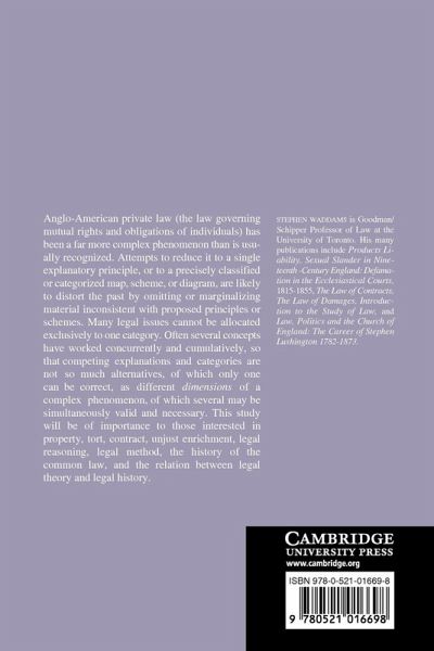 Anglo-American private law (the law governing mutual rights and obligations of individuals) has been a far more complex phenomenon than is usually recognized. Attempts to reduce it to a single explanatory principle, or to a precisely classified or categorized map, scheme, or diagram, are likely to distort the past by omitting or marginalizing material inconsistent with proposed principles or schemes. Many legal issues cannot be allocated exclusively to one category. Often several concepts have worked concurrently and cumulatively, so that competing explanations and categories are not so much alternatives, of which only one can be correct, as different dimensions of a complex phenomenon, of which several may be simultaneously valid and necessary. This study will be of importance to those interested in property, tort, contract, unjust enrichment, legal reasoning, legal method, the history of the common law, and the relation between legal theory and legal history.