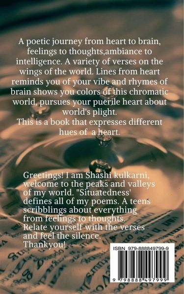 This book is a collection of various poems of different genre focusing on the exhuberance and hitches of life. Pinch of imagination, personification, life and feelings together make up these poems.