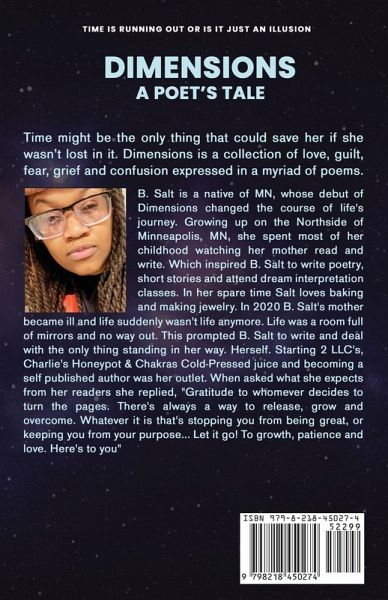 Time might be the only thing that could save her if she wasn't lost in it. Dimensions is a collection of love, guilt, fear, grief and confusion expressed in a myriad of poems. Time is running out or is it just an illusion. A poet's tale.