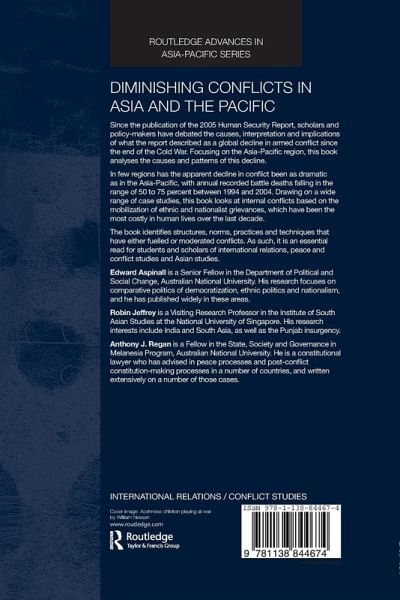 Since the publication of the 2005 Human Security Report, scholars and policy-makers have debated the causes, interpretation and implications of what the report described as a global decline in armed conflict since the end of the Cold War. Focusing on the Asia-Pacific region, this book analyses the causes and patterns of this decline. In few regions has the apparent decline in conflict been as dramatic as in the Asia-Pacific, with annual recorded battle deaths falling in the range of 50 to 75 percent between 1994 and 2004. Drawing on a wide range of case studies, this book looks at internal conflicts based on the mobilization of ethnic and nationalist grievances, which have been the most costly in human lives over the last decade. The book identifies structures, norms, practices and techniques that have either fuelled or moderated conflicts. As such, it is an essential read for students and scholars of international relations, peace and conflict studies and Asian studies.