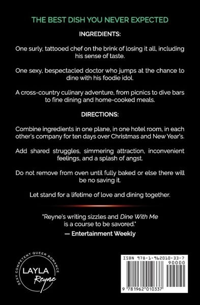 The best dish you never expected... Ingredients: One surly, tattooed chef on the brink of losing it all, including his sense of taste. One sexy, bespectacled doctor who jumps at the chance to dine with his foodie idol. A cross-country culinary adventure, from picnics to dive bars to fine dining and home-cooked meals. Directions: Combine ingredients in one plane, in one hotel room, in each other's company for ten days over Christmas and New Year's. Add shared struggles, simmering attraction, inconvenient feelings, and a splash of angst. Do not remove from oven until fully baked or else there will be no saving it. Let stand for a lifetime of love and dining together. Enjoy this emotional age-gap M/M romance novel with plenty of snacks and a box of tissues.