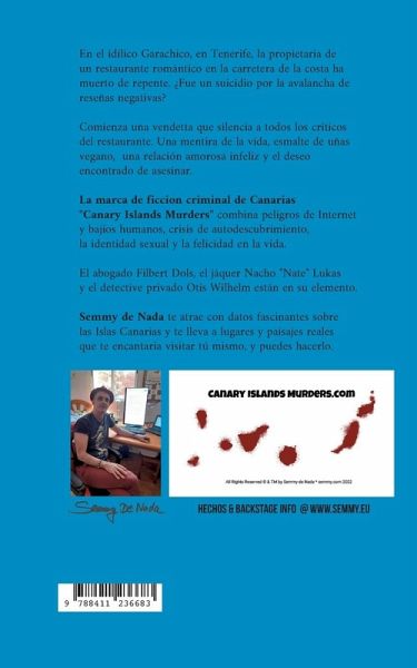 En el idílico Garachico, en Tenerife, la propietaria de un restaurante romántico en la carretera de la costa ha muerto de repente. ¿Fue un suicidio por la avalancha de reseñas negativas? Comienza una vendetta que silencia a todos los críticos del restaurante. Una mentira de la vida, esmalte de uñas vegano, una relación amorosa infeliz y el deseo encontrado de asesinar. Semmy de Nada te atrae con datos fascinantes sobre las Islas Canarias y te lleva a lugares y paisajes reales que te encantaría visitar tú mismo, y puedes hacerlo.