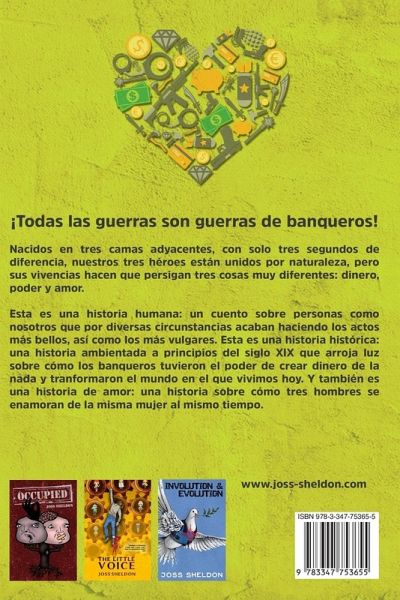 ¡TODAS LAS GUERRAS SON GUERRAS DE BANQUEROS! Nacidos en tres camas adyacentes, con solo tres segundos de diferencia, nuestros tres héroes están unidos por naturaleza, pero sus vivencias hacen que persigan tres cosas muy diferentes: dinero, poder y amor. Esta es una historia humana: un cuento sobre personas como nosotros que por diversas circunstancias acaban haciendo los actos más bellos, así como los más vulgares. Esta es una historia histórica: una historia ambientada a principios del siglo XIX que arroja luz sobre cómo los banqueros tuvieron el poder de crear dinero de la nada y tranformaron el mundo en el que vivimos hoy. Y también es una historia de amor: una historia sobre cómo tres hombres se enamoran de la misma mujer al mismo tiempo.