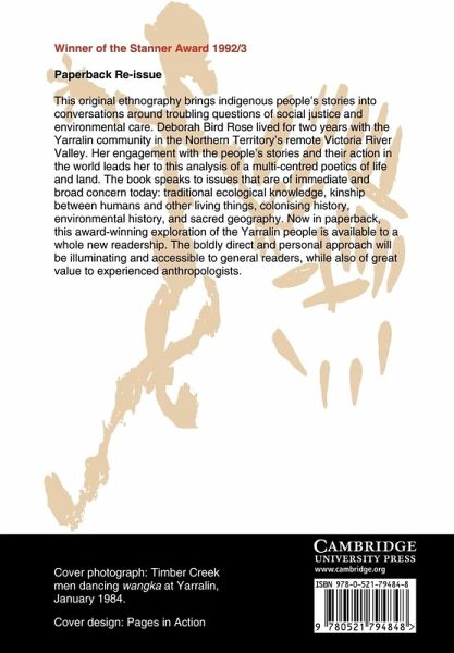 This original ethnography brings indigenous people's stories into conversations around troubling questions of social justice and environmental care. Deborah Bird Rose lived for two years with the Yarralin community in the Northern Territory's remote Victoria River Valley. Her engagement with the people's stories and their action in the world leads her to this analysis of a multi-centred poetics of life and land. The book speaks to issues that are of immediate and broad concern today: traditional ecological knowledge, kinship between humans and other living things, colonising history, environmental history, and sacred geography. Now in paperback, this award-winning exploration of the Yarralin people is available to a whole new readership. The boldly direct and personal approach will be illuminating and accessible to general readers, while also of great value to experienced anthropologists.