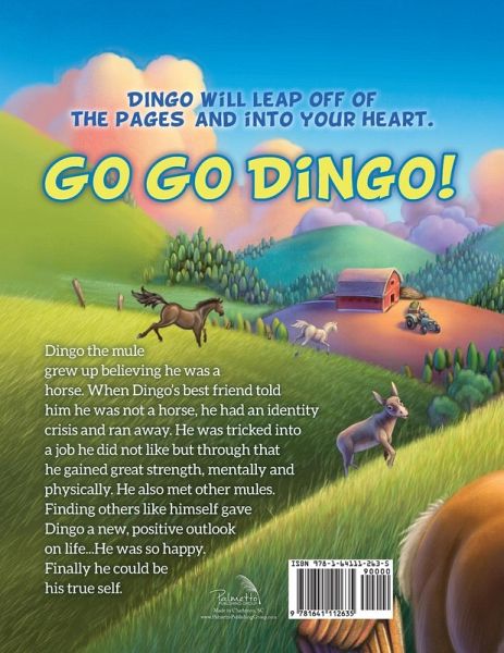Dingo the mule grew up believing he was a horse. When Dingo's best friend told him he was not a horse, he had an identity crisis and ran away. He was tricked into a job he did not like but through that, he gained great strength, mentally and physically. He also met other mules. Finding others like himself gave Dingo a new, positive outlook on life...He was so happy. Finally, he could be his true self.