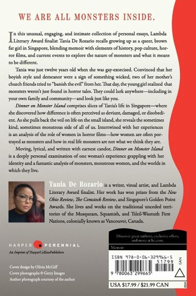 In this unusual, engaging, and intimate collection of personal essays, Lambda Literary Award finalist Tania De Rozario recalls growing up as a queer, brown, fat girl in Singapore, blending memoir with elements of history, pop culture, horror films, and current events to explore the nature of monsters and what it means to be different. Tania De Rozario was just twelve years old when she was gay-exorcised. Convinced that her boyish style and demeanor were a sign of something wicked, her mother and a pair of her church friends tried to “banish the evil” from Tania. That day, the young girl realized that monsters weren’t just found in horror tales. They could lurk anywhere—including your own family and community—and look just like you. Dinner on Monster Island is Tania’s memoir of her life and childhood in Singapore—where she discovered how difference is often perceived as deviant, damaged, disobedient, and sometimes, demonic. As she pulls back the veil on life on the small island, she reveals the sometimes kind, sometimes monstrous side of all of us. Intertwined with her experiences is an analysis of the role of women in horror. Tania looks at films and popular culture such as Carrie, The Witch, and The Ring to illuminate the ways in which women are often portrayed as monsters, and how in real life, monsters are not what we think. Moving and lyrical, written with earnest candor, and leavened with moments of humor and optimism, Dinner on Monster Island is a deeply personal examination of one woman’s experience grappling with her identity and a fantastic analysis of monsters, monstrous women and the worlds in which they live.