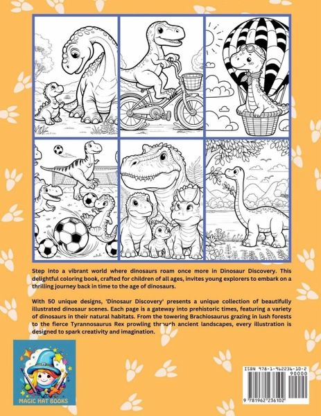 Step into a vibrant world where dinosaurs roam once more in Dinosaur Discovery. This delightful coloring book, crafted for children of all ages, invites young explorers to embark on a thrilling journey back in time to the age of dinosaurs. With 50 unique designs, 'Dinosaur Discovery' presents a unique collection of beautifully illustrated dinosaur scenes. Each page is a gateway into prehistoric times, featuring a variety of dinosaurs in their natural habitats. From the towering Brachiosaurus grazing in lush forests to the fierce Tyrannosaurus Rex prowling through ancient landscapes, every illustration is designed to spark creativity and imagination.