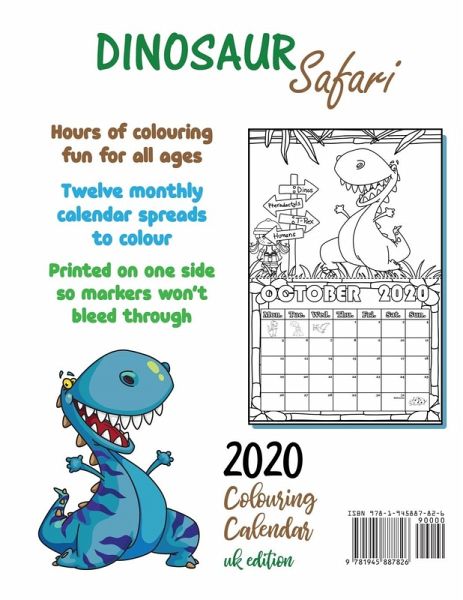 Prehistoric colouring fun!! Twelve two-page monthly calendar spreads to colour. Printed on one side so markers won’t bleed through and so pages can be cut out and hung up. Hours of colouring fun for all ages. Makes a great gift!