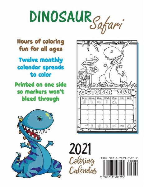 Prehistoric coloring fun!! Twelve two-page monthly calendar spreads to color. Printed on one side so markers won't bleed through and so pages can be cut out and hung up. Hours of coloring fun for all ages. Makes a great gift!