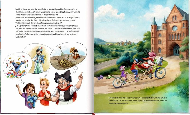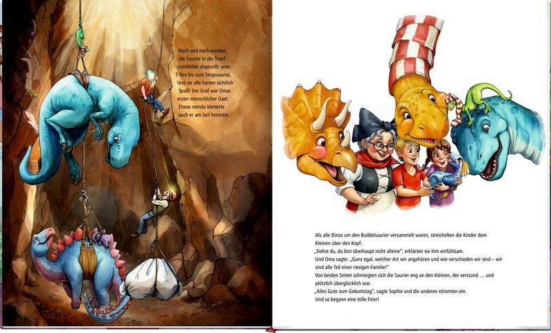 "Dinosaurier auf Omas Geburtstag" ist der fünfte Band der erfolgreichen Bilderbuchreihe rund um Leon, Sophie und ihre Oma, die ein großes Geheimnis hütet: Sie hat echte Dinosaurier als Haustiere!