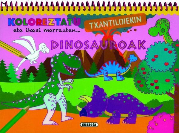 Koloreztatu eta ikasi marrazten dinosauroak ageri diren irudiak. Proposatzen dizkizugun ereduak kopiatu edo marrazki berriak egin ditzakezu, txantiloietako aukera ezberdinak baliatuz.