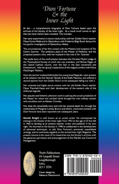 Dion Fortune played a significant role in modern esotericism, and we are indebted to Gareth Knight for this intriguing biography. Dion Fortune & the Inner Light is enthusiastically recommended to anyone interested in the western esoteric tradition and in the colorful individuals who contributed to it over the last 100 years.