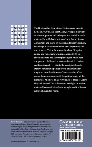 Introduction Casper C. de Jonge and Richard Hunter; Part I. Dionysius and Augustan Rhetoric and Literary Criticism: 1. Dionysius of Halicarnassus and the idea of the critic Richard Hunter; 2. Experiencing the past: language, time, and historical consciousness in Dionysian criticism Nicolas Wiater; 3. Dionysius' Demosthenes and Augustan Atticism Harvey Yunis; 4. Dionysius and Lysias' charm Laura Viidebaum; Part II. Dionysius and Augustan Historiography: 5. The expansive scale of the Roman Antiquities Stephen P. Oakley; 6. Ways of killing women: Dionysius on the deaths of Horatia and Lucretia Clemence Schultze; 7. The prehistory of the Roman polis in Dionysius Matthew Fox; Part III. Dionysius and Augustan Rome: 8. Dionysius on regime change Christopher Pelling; 9. How Roman are the Antiquities? The Decemvirate according to Dionysius Daniel Hogg; 10. Dionysius and Horace: composition in Augustan Rome Casper C. de Jonge; Envoi: migrancy Joy Connolly.
