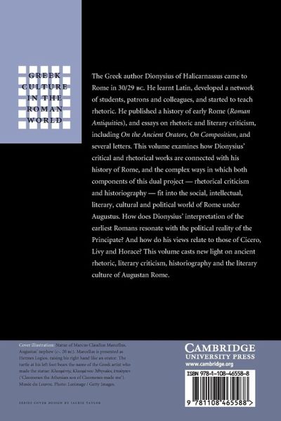 Introduction Casper C. de Jonge and Richard Hunter; Part I. Dionysius and Augustan Rhetoric and Literary Criticism: 1. Dionysius of Halicarnassus and the idea of the critic Richard Hunter; 2. Experiencing the past: language, time, and historical consciousness in Dionysian criticism Nicolas Wiater; 3. Dionysius' Demosthenes and Augustan Atticism Harvey Yunis; 4. Dionysius and Lysias' charm Laura Viidebaum; Part II. Dionysius and Augustan Historiography: 5. The expansive scale of the Roman Antiquities Stephen P. Oakley; 6. Ways of killing women: Dionysius on the deaths of Horatia and Lucretia Clemence Schultze; 7. The prehistory of the Roman polis in Dionysius Matthew Fox; Part III. Dionysius and Augustan Rome: 8. Dionysius on regime change Christopher Pelling; 9. How Roman are the Antiquities? The Decemvirate according to Dionysius Daniel Hogg; 10. Dionysius and Horace: composition in Augustan Rome Casper C. de Jonge; Envoi: migrancy Joy Connolly.