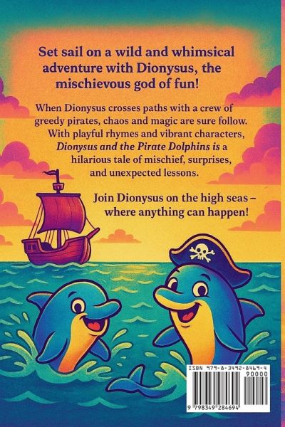 Set sail on a wild and whimsical adventure with Dionysus, the mischievous god of fun! When Dionysus sets out to find the world's sweetest grapes, he winds up on a pirate ship with a not-so-trustworthy crew. But these pirates are hilariously unaware that they have encountered a god - and they're in for a surprise of mythic proportions! With playful rhymes, magical mishaps, and a boatload of laughs, Dionysus and the Pirate Dolphins is a fresh, funny take on Greek mythology. Join Dionysus on the high seas as he turns trouble into triumph, and pirates into... well, dolphins. Perfect for kids who love adventure, laughter, and just a splash of grape juice!