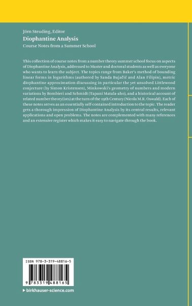 This collection of course notes from a number theory summer school focus on aspects of Diophantine Analysis, addressed to Master and doctoral students as well as everyone who wants to learn the subject. The topics range from Baker's method of bounding linear forms in logarithms (authored by Sanda Bujacic and Alan Filipin), metric diophantine approximation discussing in particular the yet unsolved Littlewood conjecture (by Simon Kristensen), Minkowski's geometry of numbers and modern variations by Bombieri and Schmidt (Tapani Matala-aho), and a historical account of related number theory(ists) at the turn of the 19th Century (Nicola M.R. Oswald). Each of these notes serves as an essentially self-contained introduction to the topic. The reader gets a thorough impression of Diophantine Analysis by its central results, relevant applications and open problems. The notes are complemented with many references and an extensive register which makes it easy to navigate through the book.