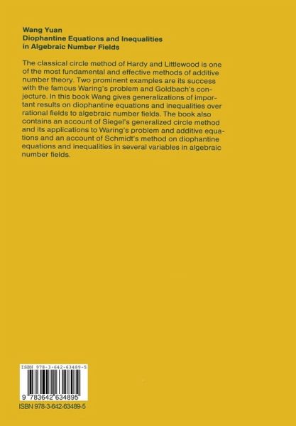 1. The Circle Method and Waring's Problem.- 1.1 Introduction.- 1.2 Farey Division.- 1.3 Auxiliary Lemmas.- 1.4 Major Arcs.- 1.5 Singular Integral.- 1.6 Singular Series.- 1.7 Proof of Lemma 1.12.- 1.8 Proof of Theorem 1.1.- Notes.- 2. Complete Exponential Sums.- 2.1 Introduction.- 2.2 Several Lemmas.- 2.3 Mordell's Lemma.- 2.4 Fundamental Lemma.- 2.5 Proof of Theorem 2.1.- 2.6 Proof of Theorem 2.2.- Notes.- 3. Weyl's Sums.- 3.1 Introduction.- 3.2 Proof of Theorem 3.1.- 3.3 A Lemma on Units.- 3.4 The Asymptotic Formula for N(a,T).- 3.5 A Sum.- 3.6 Mitsui's Lemma.- 3.7 Proof of Theorem 3.3.- 3.8 Proof of Lemma 3.6.- 3.9 Continuation.- Notes.- 4. Mean Value Theorems.- 4.1 Introduction.- 4.2 Proof of Theorem 4.1.- 4.3 Proof of Theorem 4.2.- 4.4 A Lemma on the Set D.- 4.5 A Lemma on the Set D(x).- 4.6 Fundamental Lemma.- 4.7 Proof of Lemma 4.1.- Notes.- 5. The Circle Method in Algebraic Number Fields.- 5.1 Introduction.- 5.2 Lemmas.- 5.3 Asympotic Expansion forSi (?, T).- 5.4 Further Estimates on Basic Domains.- 5.5 Proof of Theorem 5.1.- 5.6 Proof of Theorem 5.2.- Notes.- 6. Singular Series and Singular Integrals.- 6.1 Introduction.- 6.2 Product Form for Singular Series.- 6.3 Singular Series and Congruences.- 6.4 p-adic Valuations.- 6.5 k-th Power Residues.- 6.6 Proof of Theorem 6.1.- 6.7 Monotonic Functions.- 6.8 Proof of Theorem 6.2.- Notes.- 7. Waring's Problem.- 7.1 Introduction.- 7.2 The Ring Jk.- 7.3 Proofs of Theorems 7.1 and 7.2.- 7.4 Proof of Theorem 7.3.- 7.5 Proof of Theorem 7.4.- Notes.- 8. Additive Equations.- 8.1 Introduction.- 8.2 Reductions.- 8.3 Contraction.- 8.4 Derived Variables.- 8.5 Proof of Theorem 8.1.- 8.6 Proof of Theorem 8.2.- 8.7 Bounds for Solutions.- Notes.- 9. Small Nonnegative Solutions of Additive Equations.- 9.1 Introduction.- 9.2Hurwitz's Lemma.- 9.3 Reductions.- 9.4 Continuation.- 9.5 Farey Division.- 9.6 Supplementary Domain.- 9.7 Basic Domains.- 9.8 Proof of Theorem 9.1.- Notes.- 10. Small Solutions of Additive Equations.- 10.1 Introduction.- 10.2 Reductions.- 10.3 Continuation.- 10.4 Farey Division.- 10.5 Supplementary Domain.- 10.6 Basic Domains.- 10.7 Proof of Theorem 10.1.- Notes.- 11. Diophantine Inequalities for Forms.- 11.1 Introduction.- 11.2 A Single Additive Form.- 11.3 A Variant Circle Method.- 11.4 Continuation.- 11.5 Proof of Lemma 11.1.- 11.6 Linear Forms.- 11.7 A Single Form.- 11.8 Proof of Theorem 11.1.- Notes.- References I.- References II.