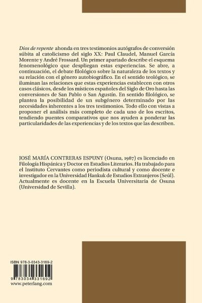 En este estudio se ahonda en tres testimonios autógrafos de conversión súbita al catolicismo en el siglo XX: Paul Claudel, Manuel García Morente y André Frossard. Se abre el libro con un primer apartado donde se describe el esquema fenomenológico que despliega este tipo de experiencias para, acto seguido, abrir el debate filológico sobre la naturaleza de estos textos y su relación dentro del género autobiográfico. En el sentido filosófico y teológico, se rastrean los antecedentes en las distintas experiencias místicas y se resaltan los paralelismos con casos clásicos, como serían los de San Pablo de Tarso y San Agustín de Hipona. En el sentido filológico, se plantea la posibilidad de un subgénero dada la idiosincrasia particular que narrativamente configuran los tres escritos. Posteriormente, se procede al análisis pormenorizado de cada uno de los testimonios, tendiendo puentes comparativos que nos ayuden a ponderar las particularidades personales, filosóficas y filológicas de laexperiencia y de los escritos que las describen.