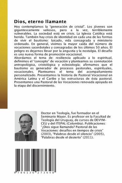 Hoy contemplamos la ¿generación de cristal¿. Los jóvenes son gigantescamente valiosos, pero a la vez, terriblemente vulnerables. La sociedad está en crisis. La Iglesia Católica está herida. También hay crisis de identidad en cada una de las formas de vivir el bautismo: laicado, vida consagrada y ministerio ordenado. En general, vivimos la mayor caída del número de vocaciones sacerdotales y consagradas de los últimos 50 años. El peligro es dejarnos llevar por la angustia y la nostalgia. El desafío es una nueva forma de promoción vocacional.Abordamos el tema de: resiliencia aplicado a lo espiritual, definimos el ¿conceptö de vocación y planteamos su connotación antropológica, cristológica y eclesiología; afirmamos que el bautismo es generador de procesos pastorales, espirituales, vocacionales. Planteamos el tema del acompañamiento personalizado. Presentamos la historia de Pastoral Vocacional en América Latina y el Caribe y las estructuras de ésta pastoral. Presentamos una Pastoral de las Vocaciones renovada apoyada en la etapa del discernimiento.