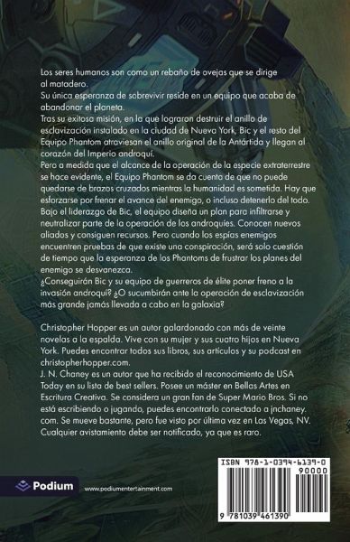 Los seres humanos son como un rebaño de ovejas que se dirige al matadero. Su única esperanza de sobrevivir reside en un equipo que acaba de abandonar el planeta. Tras su exitosa misión, en la que lograron destruir el anillo de esclavización instalado en la ciudad de Nueva York, Bic y el resto del Equipo Phantom atraviesan el anillo original de la Antártida y llegan al corazón del Imperio androquí. Pero a medida que el alcance de la operación de la especie extraterrestre se hace evidente, el Equipo Phantom se da cuenta de que no puede quedarse de brazos cruzados mientras la humanidad es sometida. Hay que esforzarse por frenar el avance del enemigo, o incluso detenerlo del todo. Bajo el liderazgo de Bic, el equipo diseña un plan para infiltrarse y neutralizar parte de la operación de los androquíes. Conocen nuevos aliados y consiguen recursos. Pero cuando los espías enemigos encuentren pruebas de que existe una conspiración, será solo cuestión de tiempo que la esperanza de los Phantoms de frustrar los planes del enemigo se desvanezca. ¿Conseguirán Bic y su equipo de guerreros de élite poner freno a la invasión androquí? ¿O sucumbirán ante la operación de esclavización más grande jamás llevada a cabo en la galaxia?