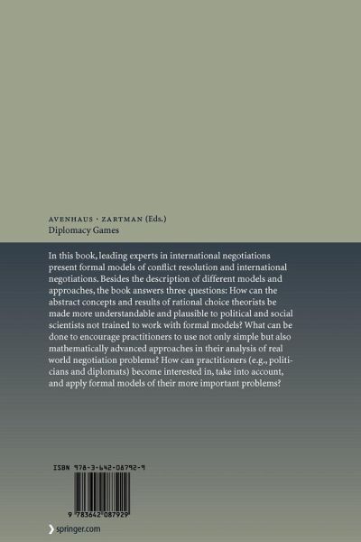 In this book, leading experts in international negotiations present formal models of conflict resolution and international negotiations. Besides the description of different models and approaches, the book answers three questions: How can the abstract concepts and results of rational choice theorists be made more understandable and plausible to political and social scientists not trained to work with formal models? What can be done to encourage practitioners to use not only simple but also mathematically advanced approaches in their analysis of real world negotiation problems? How can practitioners (e.g., politicians and diplomats) become interested in, take into account, and apply formal models of their more important problems?