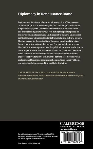 Diplomacy in Renaissance Rome is an investigation of Renaissance diplomacy in practice. Presenting the first book-length study of this subject for sixty years, Catherine Fletcher substantially enhances our understanding of the envoy's role during this pivotal period for the development of diplomacy. Uniting rich but hitherto unexploited archival sources with recent insights from social and cultural history, Fletcher argues for the centrality of the papal court - and the city of Rome - in the formation of the modern European diplomatic system. The book addresses topics such as the political context from the return of the popes to Rome, the 1454 Peace of Lodi and after 1494 the Italian Wars; the assimilation of ambassadors into the ceremonial world; the prescriptive literature; trends in the personnel of diplomacy; an exploration of travel and communication practices; the city of Rome as a space for diplomacy; and the world of gift-giving.